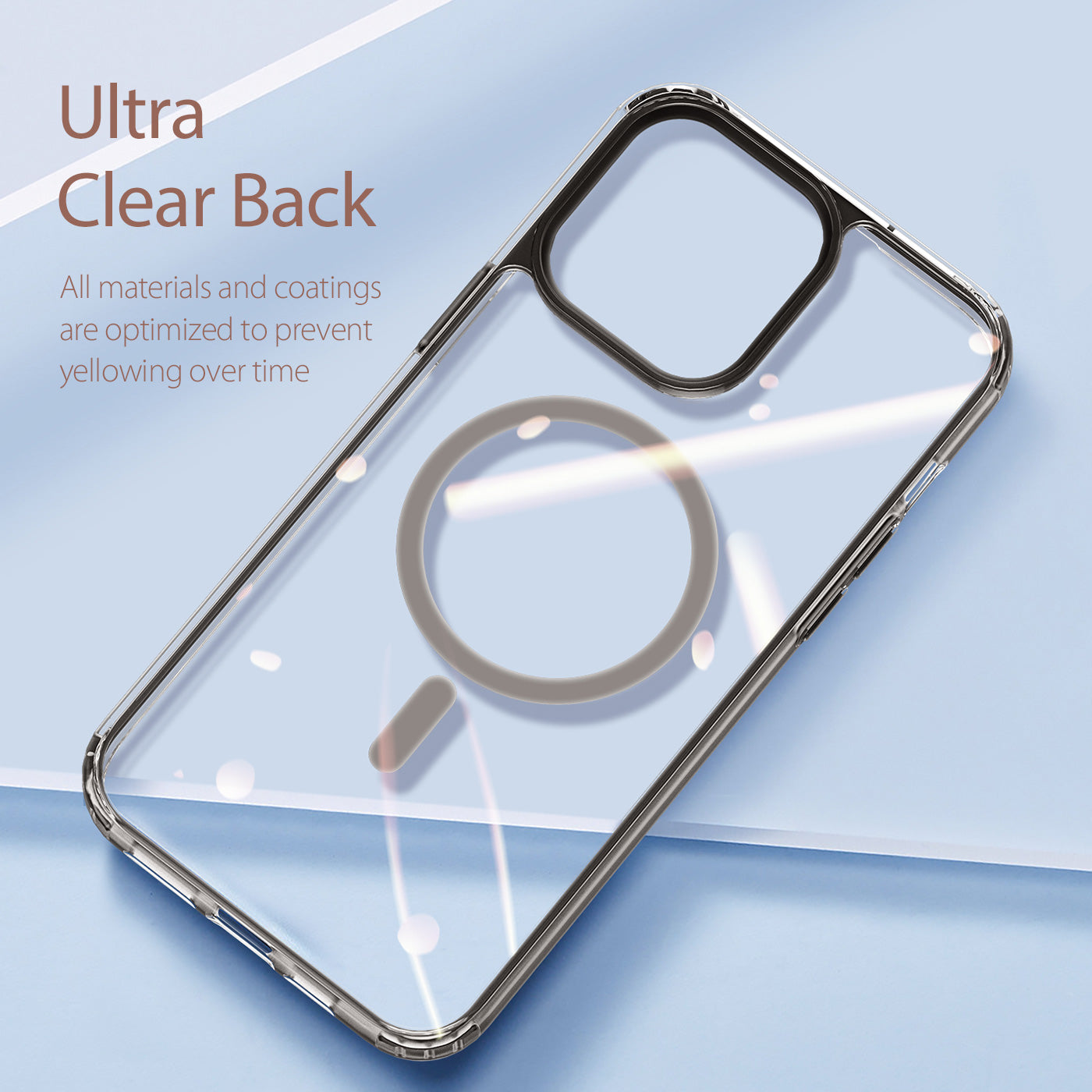 Ultra Clear Back Protects the camera, back and all edges of your mobile phone from being scratched by daily frictions. Materials Made of quality Bayer TPU+PC with strong magnets, all materials are optimized to prevent yellowing over time. Built-in MagSafe This crystal clear case with colored edge for iPhone 14 series completely supports MagSafe wireless charging. Other features Features light, thin, and easy to grip, it looks very clear and shows off the brilliant colored finish of your phone. Compatible model: iPhone 13 iPhone 14