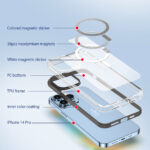 Ultra Clear Back Protects the camera, back and all edges of your mobile phone from being scratched by daily frictions. Materials Made of quality Bayer TPU+PC with strong magnets, all materials are optimized to prevent yellowing over time. Built-in MagSafe This crystal clear case with colored edge for iPhone 14 series completely supports MagSafe wireless charging. Other features Features light, thin, and easy to grip, it looks very clear and shows off the brilliant colored finish of your phone.