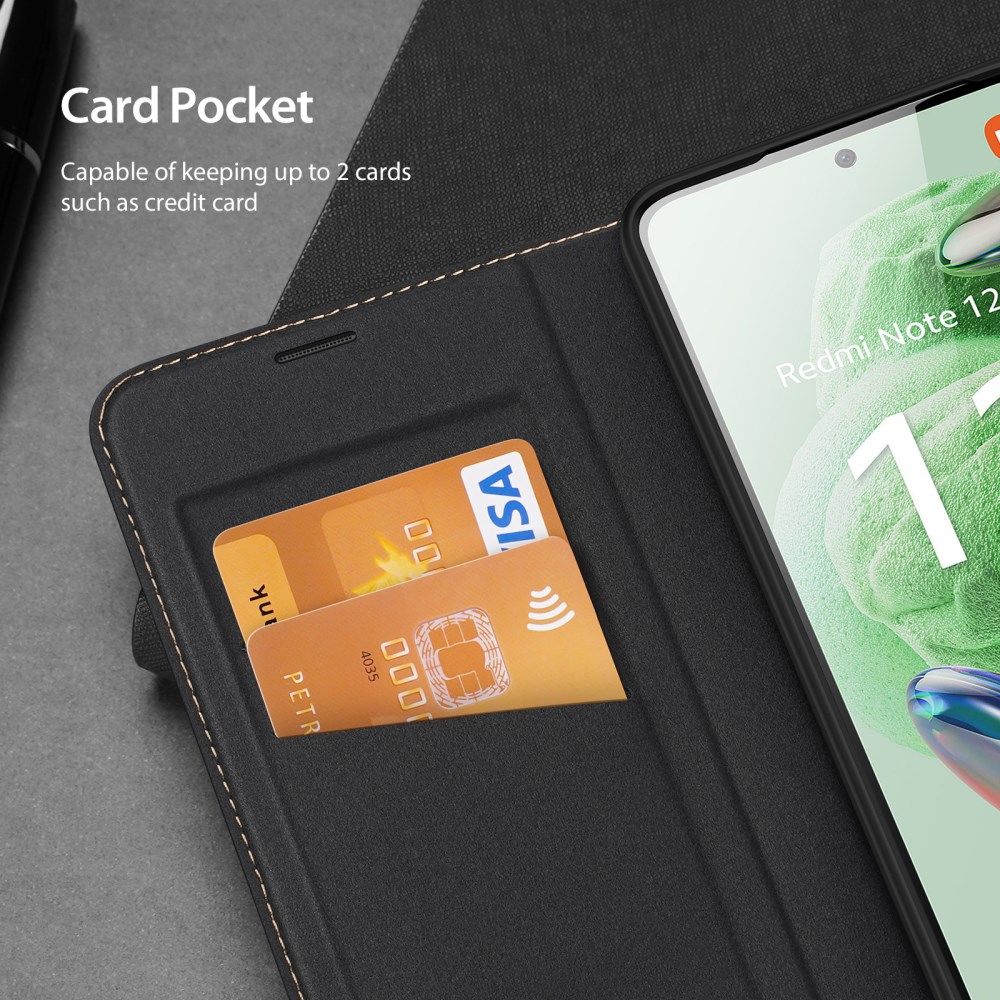 DUX DUCIS Skin X2 Tough Rugged Flip Wallet Case for Xiaomi Redmi Note 12 5G / Poco X5 5G – Black