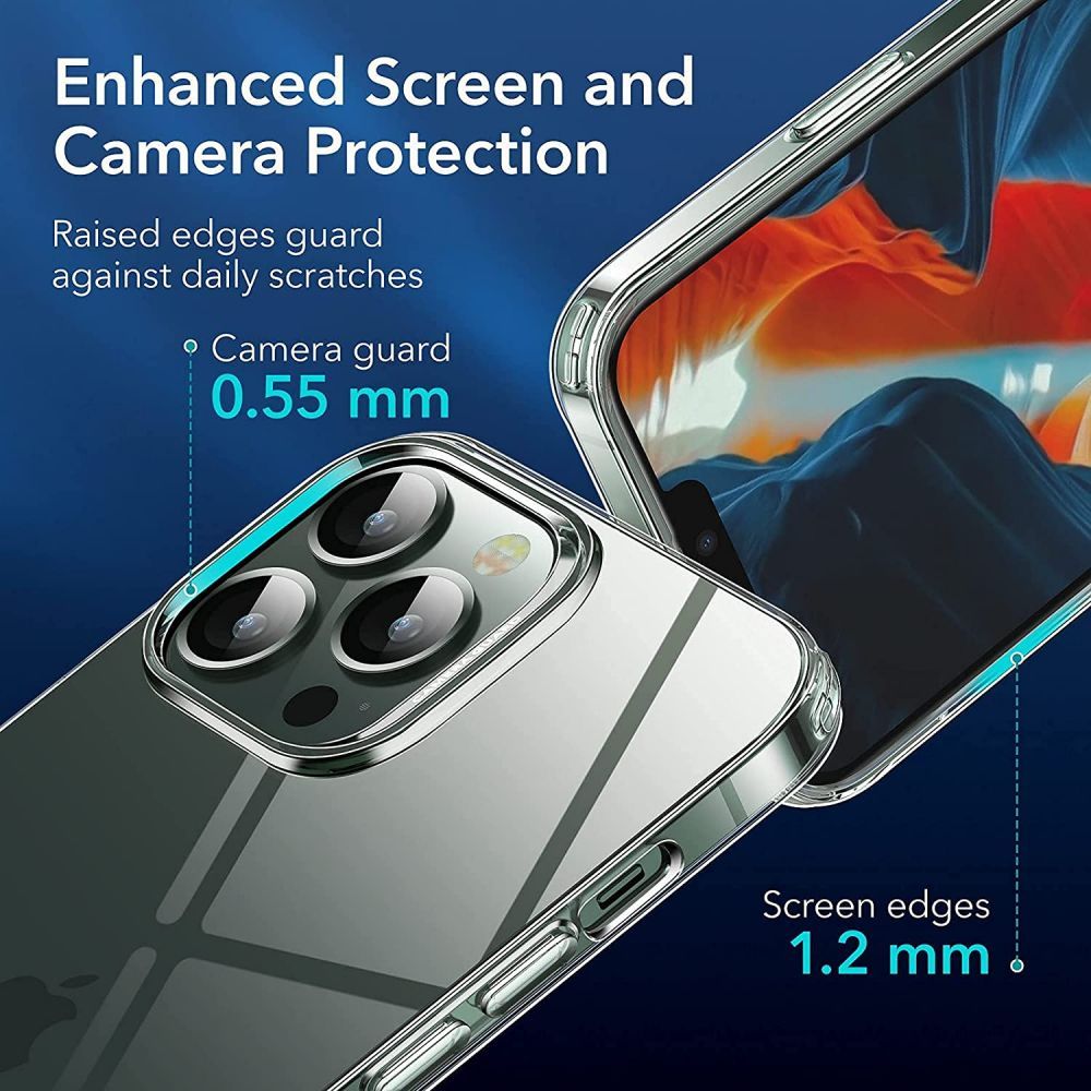 STAY ORIGINAL Show off your Phone with crystal-clear yellowing-resistant polymer. Just 1.1 mm thin for bulk-free protection. SHOCK-RESISTANT This ESR case protects your phone from drops, dings, and bumps. SCREEN & CAMERA PROTECTION Raised bezels help protect your Phone’s screen & camera from scratches. WATERMARK-FREE Microdots on the inside of this case prevent that clinging “wet” look, keeping your Phone looking great.