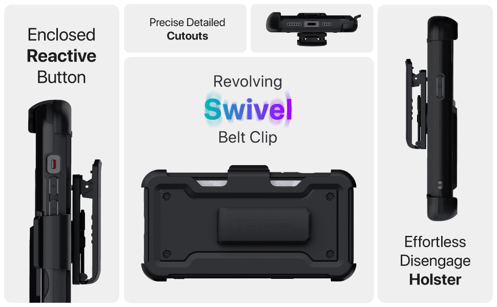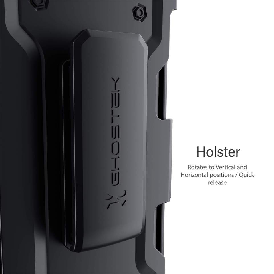 Keep your iPhone safe, secure, and close at hand with the premium IRON ARMOR iPhone belt clip case. With a built-in credit card holder, holster with a swivel belt clip, this iPhone heavy-duty case offers convenience and style all in one case. The case comes in a grippy matte design with 360-degree protection. On the front, you’ll find a raised bezel bumper to protect the Super Retina XDR display screen. The phone case is made with a durable polycarbonate frame and has two built-in kickstands (1 on the case, 1 in the belt clip). This iPhone kickstand case is built with a rugged dual-layer construction which gives it additional drop and shockproof protection. Overall, the case is rated to withstand drops from 12FT and has been military-grade standard drop tested. If you are looking for a premium belt clip case with functionality and military protection, you’ve found it with our Iron Armor Series! Super Durable Dual Layer Design Heavy Duty Shockproof Protection Two Built-in Adjustable Kickstands Convenient Slot Fits 1 Credit Card Swivel Belt Clip Holster Included Comfortable Anti-Slip Hand Grip Raised Camera Lens Perimeter Lifted Bumper Lip to Protect Display Military Grade Standard Drop Tested Withstands Drops from 12 Feet Supports Wireless Charging Face ID Unlock Compatible Materials Thermoplastic (TPU) Polycarbonate (PC)