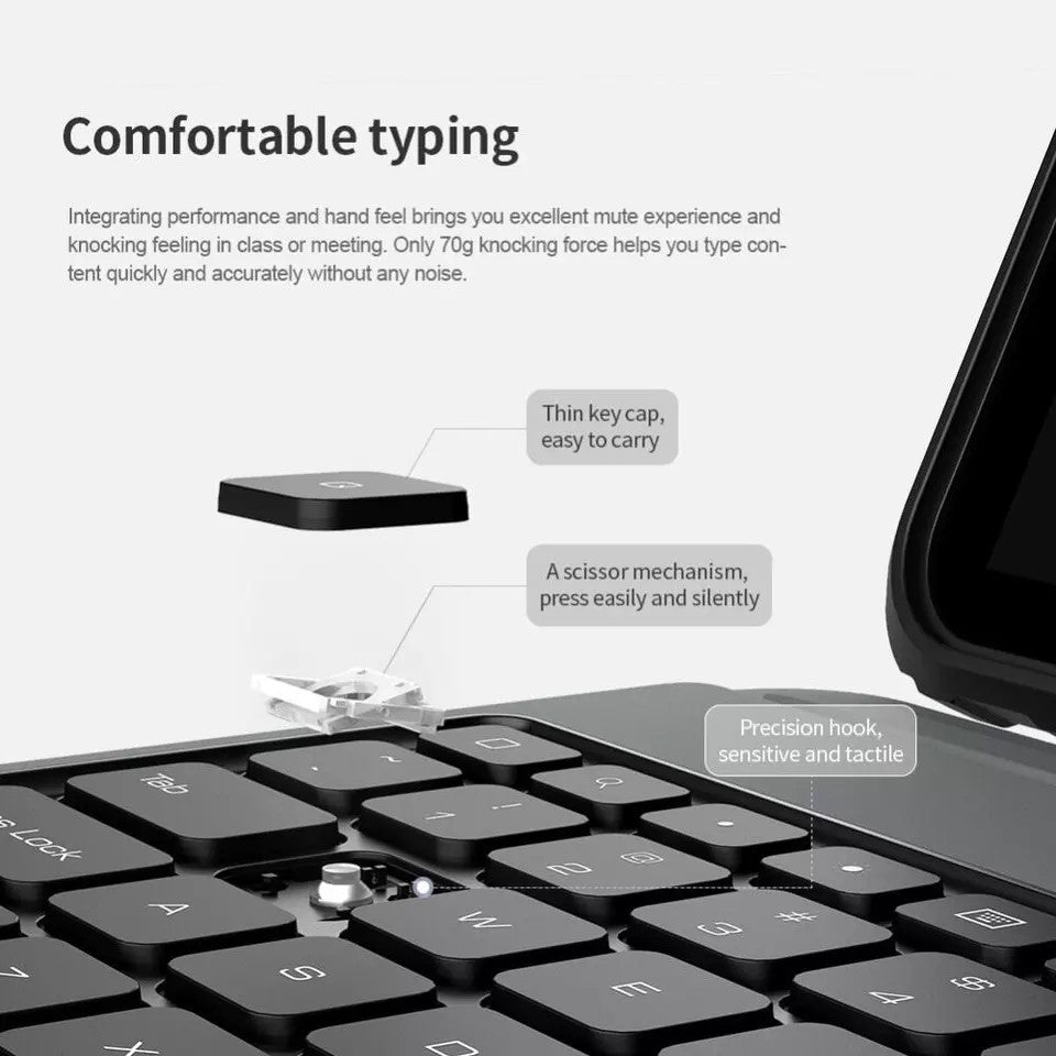 Bumper Combo Keyboard Case is a multi-function keyboard case specially for iPad Pro and iPad Air, featuring an adjustable stand, a removable keyboard and a trackpad that make it convenient to type, view, read and sketch. Also let you enjoy a flexible operation experience. The adopted military-grade anti-fall case wraps tightly around iPad ‘s edges, offering all around protection. Patented sliding camera cover design efficiently protect iPad’s camera from abrasion and scratches. Concise and delicate PU fabric blends with the aesthetics of iPad, a perfect integration of art and technology.