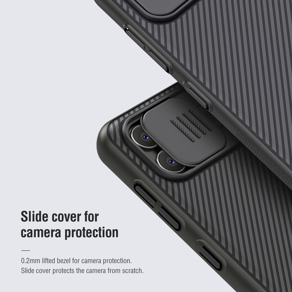 Camera Lens Protection Sliding Camera Cover to protect the main rear camera of your phone from scratches and everyday knocks and bumps. Additional, the case has a 0.2mm lifted bezel for camera protection. Advanced Technology Processed by advanced technology, to give a soft and smooth touch, and also anti fingerprint. Made from polycarbonate, tough and wear resistant, providing reliable protection. Accurate Cutouts Tactile buttons for solid feedback and an easy press. Wireless Charging-friendly If your device supports wireless charging, the CamShield will be fully compatible with your wireless charging, no need to take off the case when going to wirelessly charge your phone.
