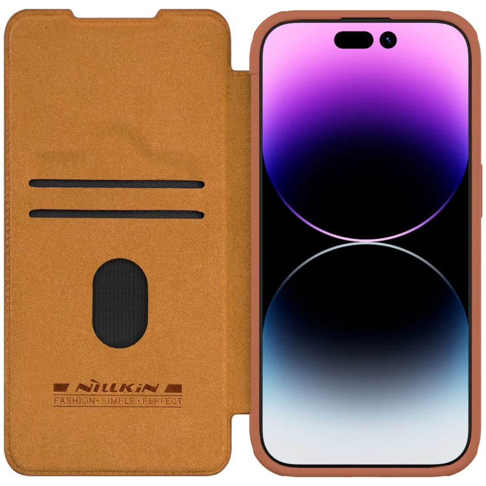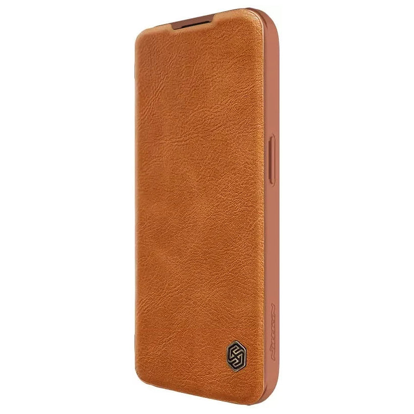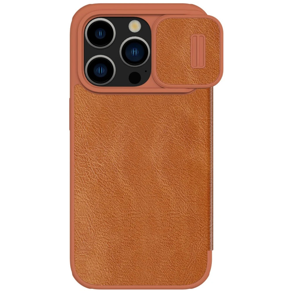 Nillkin Qin Pro Faux Leather Camera Lens Protector Case for Apple iPhone 15 Pro Max – Brown