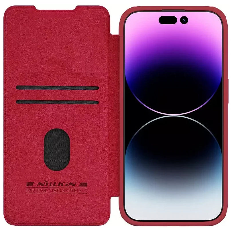 Nillkin Qin Pro Faux Leather Camera Lens Protector Case for Apple iPhone 15 Pro – Red