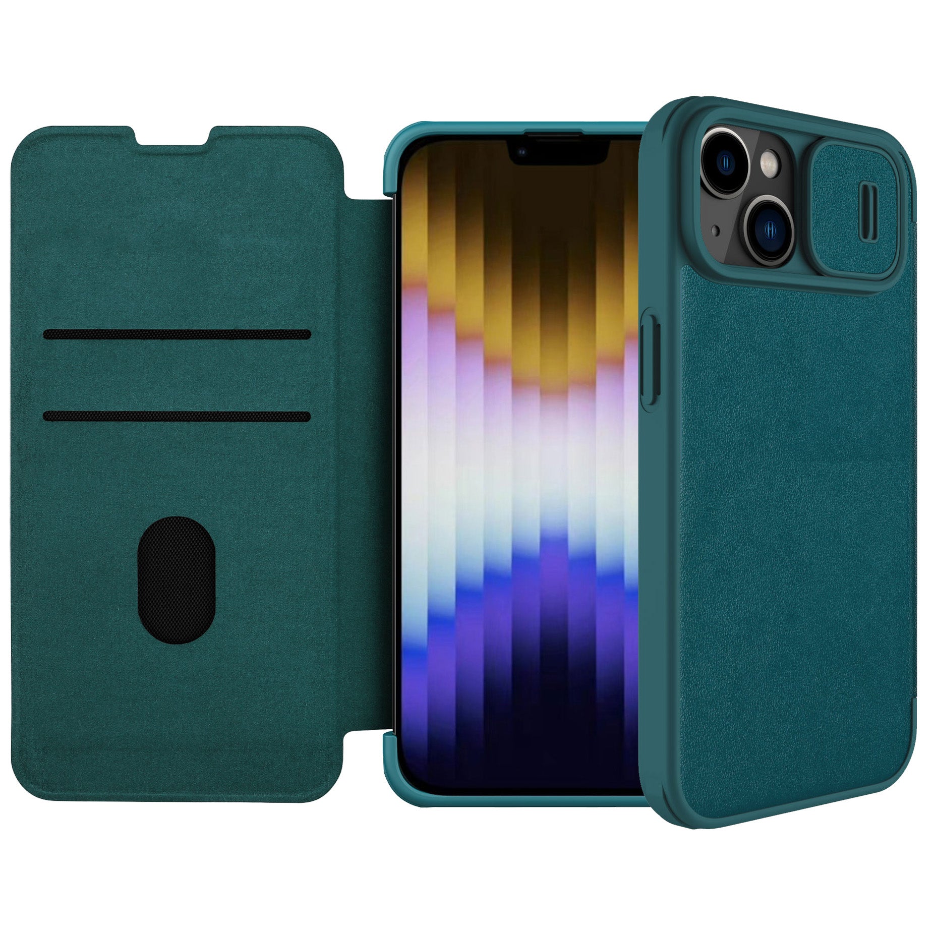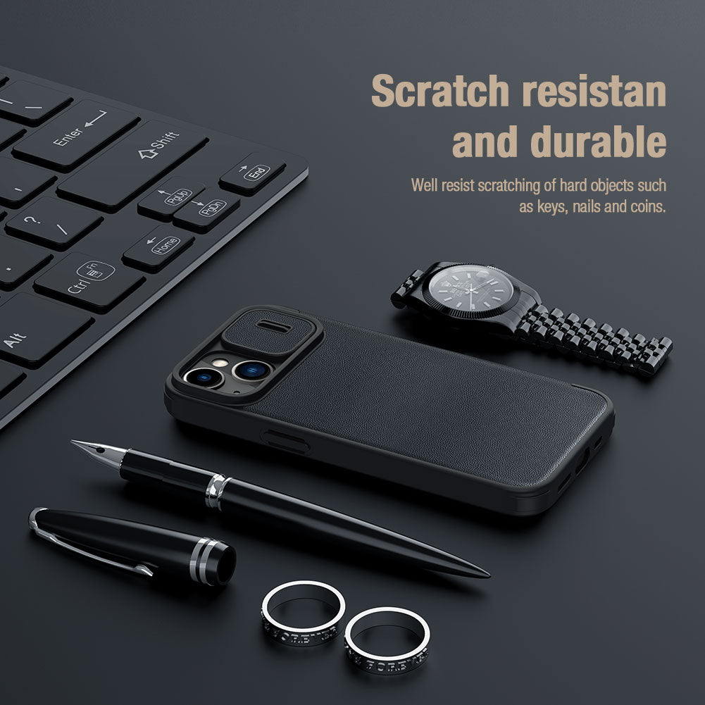 Nillkin Qin Pro Vegan Leather Lens Protector Case for iPhone 14 Plus – Exuberant Green