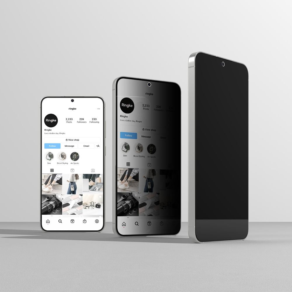 High-quality Ringke Easy Slide tempered glass with a protective filter function is the perfect way to protect your screen from damage and limit its visibility to bystanders. The polarizing filter limits the visibility of the screen at an angle of 28°, and completely reduces it at an angle of 40°. The glass has a hardness of 9H, which is sufficient to effectively protect the screen, with the glass itself being highly resistant to superficial scratches. It is also covered with an oleophobic layer that reduces the degree of fingerprints being left on the screen. Additionally, to ensure easy installation, the Easy Slide assembly tool is included in the set, thanks to which the application of the glass becomes simpler and more precise. Trust the Ringke brand and its excellent quality! * The glass is cut only and exclusively to a flat part with a convex structure, in accordance with and based on the die prepared by the manufacturer of a given phone model. ** Due to various milling, after installing the protective glass on the screen, a delicate air halo may appear around the screen. This is a natural situation and depends on the device itself. PRODUCT FEATURES: – 100% Original – Packed in original packaging – Scratch resistance up to 9H – Has a polarizing filter – Has an oleophobic layer – Milled 2.5D edges pleasant to the touch – Does not affect touch sensitivity – Dimensions: 159 x 74 mm THE SET INCLUDES: 2 x Ringke Easy Slide Privacy Glass 2 x Installation kit